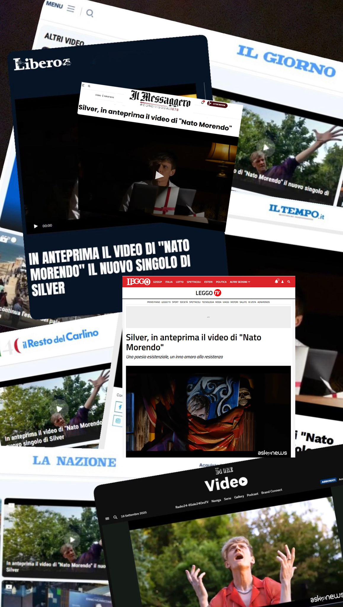 Silver è su Aska News e su tutte le maggiori testate nazionali, il 16 settembre 2025, con l'anteprima del video di "Nato Morendo", di Matteo Sambero, con la partecipazione del maestro Gino Rodella.